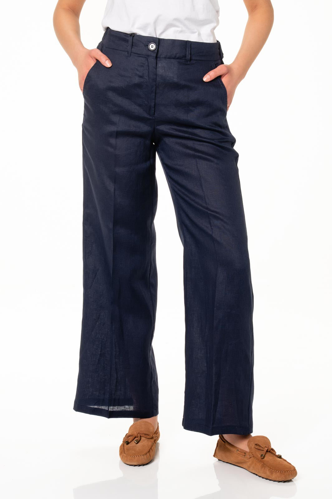 Pantalone micio blu lino Pennyblack
